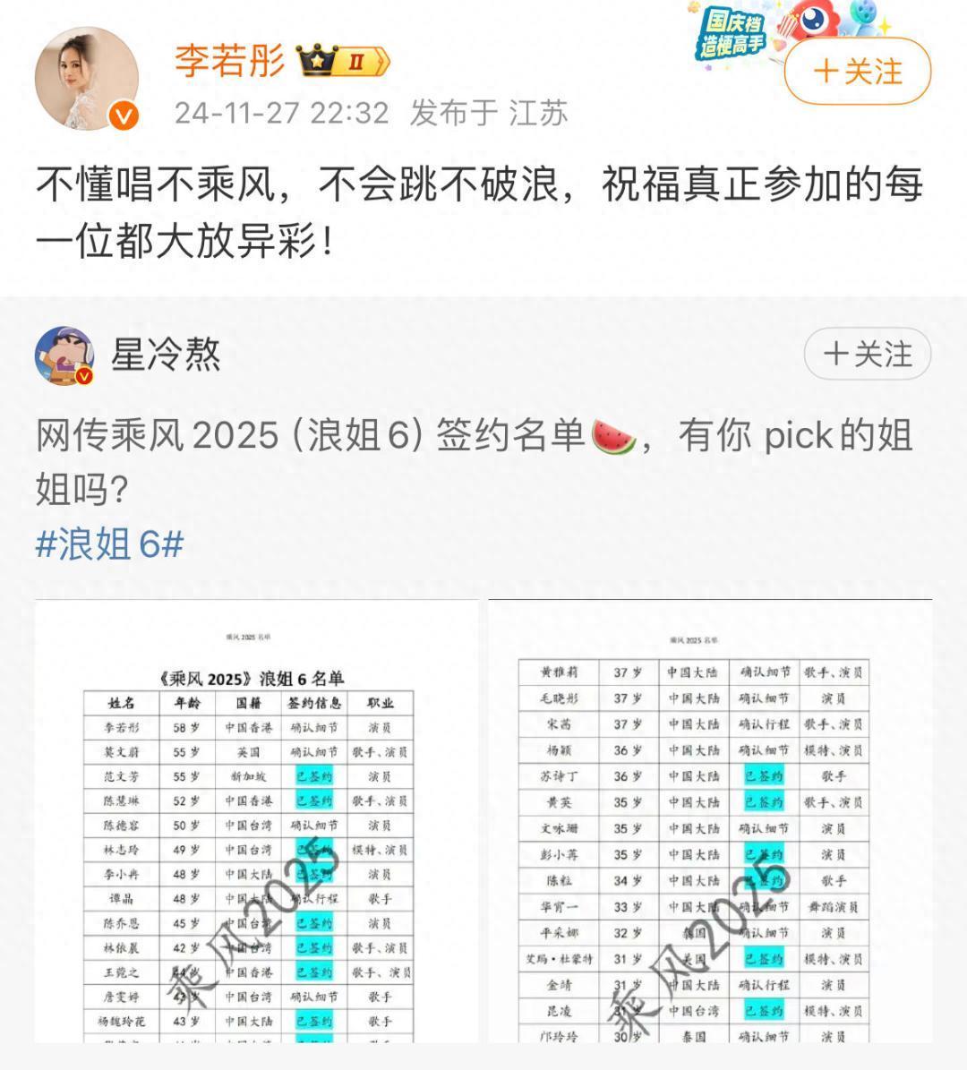 重庆时时彩三公美高梅金卡是限量的吗金沙厅菜单凭证网传名单,已证实参与浪姐6的嘉宾包括莫文蔚、张靓颖、杨颖、林志玲、李小冉、陈慧琳、林依晨、王珞丹、徐佳莹、姜妍、李霄云、苏诗丁、黄英、彭小苒、陈粒、艾玛杜蒙特、昆凌、孟慧圆、徐璐等东说念主。此外,还有多位艺东说念主正在证实细节阶段,如李若彤、陈德容、詹雯婷、黄雅莉、毛晓彤、文咏珊、华宵一、平采娜等。